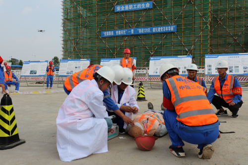 物体打击伤害是建筑行业常见的五大伤害之一,对施工人员的生命安全存在极大的威胁,尤其在安全监管不力、安全投入不足以及交叉作业过程中时常发现。山东分公司此次物体打击事故应急救援演练活动,模拟高空坠物导致打击伤害的情况。演练中,一名人员在塔吊吊物作业时正在其下施工,由于塔吊吊物捆绑不牢导致吊物坠落砸中头部,当场倒地昏迷。项目部在得知情况后,立即启动物体打击事故应急预案进行快速抢险。抢险小组第一时间控制了事发现场,了解伤者情况并排除可能造成二次伤害的潜在隐患。警戒小组立即疏散无关人员,疏通应急救援通道,以便救援车辆方便进入,同时在现场布置警戒线,做好安全警戒工作。急救小组对伤者的受伤程度进行初步的了解排查,并进行简单的急救措施。同时,项目部事故调查组负责对此次伤亡时间立即展开详细调查,查清事故原因,严格按照“四不放过”原则进行处理,并形成事故处理报告报送领导批示。各应急小组分工明确,切实履职,对伤者采取及时、有效的抢救措施,将事故的影响降到了最低。