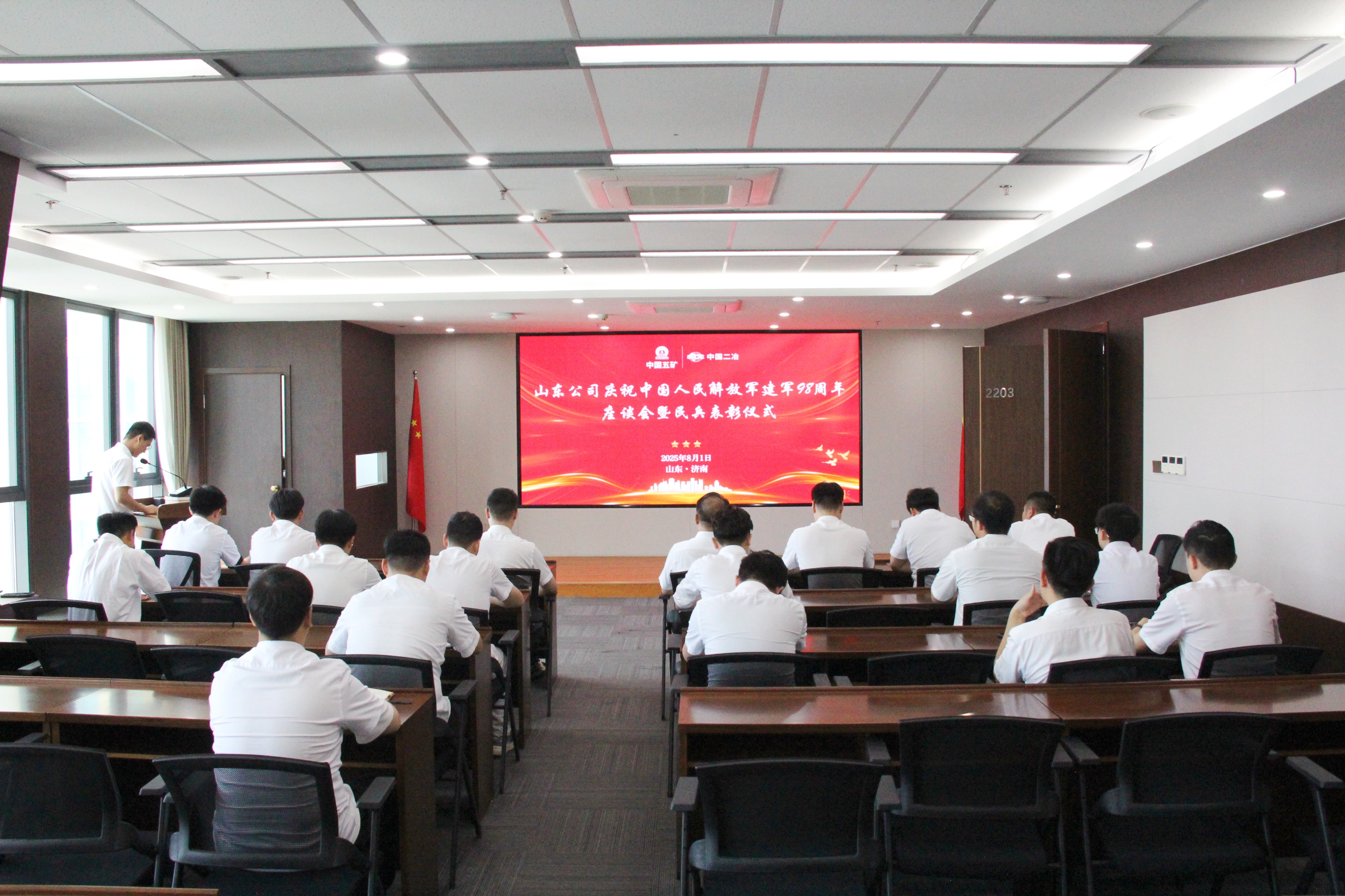 8月1日,山东分公司召开庆祝中国人民解放军建军98周年座谈会暨民兵表彰仪式,党委书记、工会主席杨军在致全体民兵同志的慰问信中对全体民兵同志提出三点希望,一是争当“听党指挥”的忠诚卫士,二是争当“能打胜仗”的行业标杆,三是争当“作风优良”的为民先锋。活动中,对在集中训练中展现出过硬的军事素养和优良作风的民兵同志予以表彰。