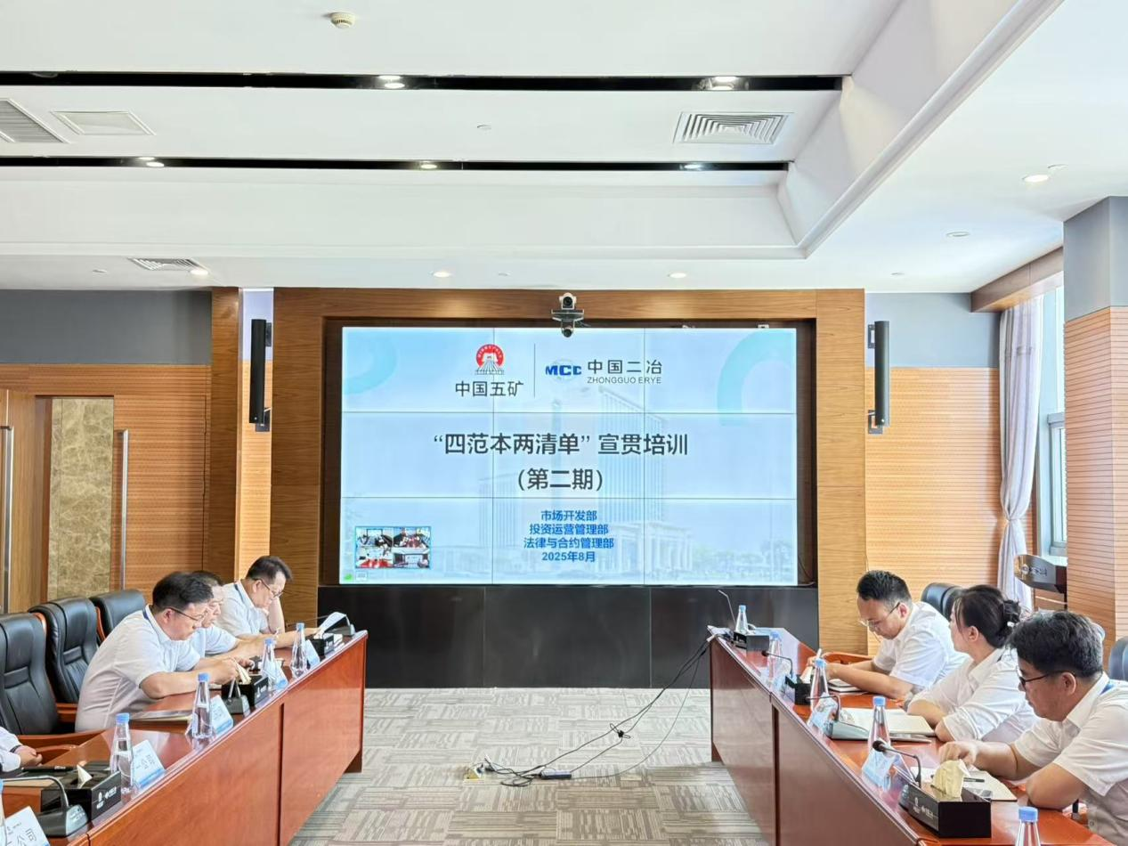 为落实集团公司“管理规范年”和中国中冶《关于发布适用“四范本两清单(试行)”的通知》相关要求,促进基础管理提升,强化合同体系的风控能力和履约能力,推动“四范本两清单(试行)”在公司有效落地。2025年8月6日及2025年8月13日,公司法务部牵头,联合经营预算部、物资设备部、市场开发部、投资运营管理部组织了两期“四范本两清单(试行)”宣贯培训。业务部门对《建设工程施工专业分包合同(试行)》《建设工程施工劳务分包合同(试行)》《机械设备租赁合同(试行)》《物资采购合同(试行)》《投标承包合同评审负面清单(试行)》《投融资项目股东协议重点关注事项清单(试行)》的条款、执行标准及合规要求进行了重点讲解。法务部结合案例,针对不同业务场景下的法律适用问题及提出了法律风险应对提出具体建议。两级公司相关业务系统工作人员参加了培训。