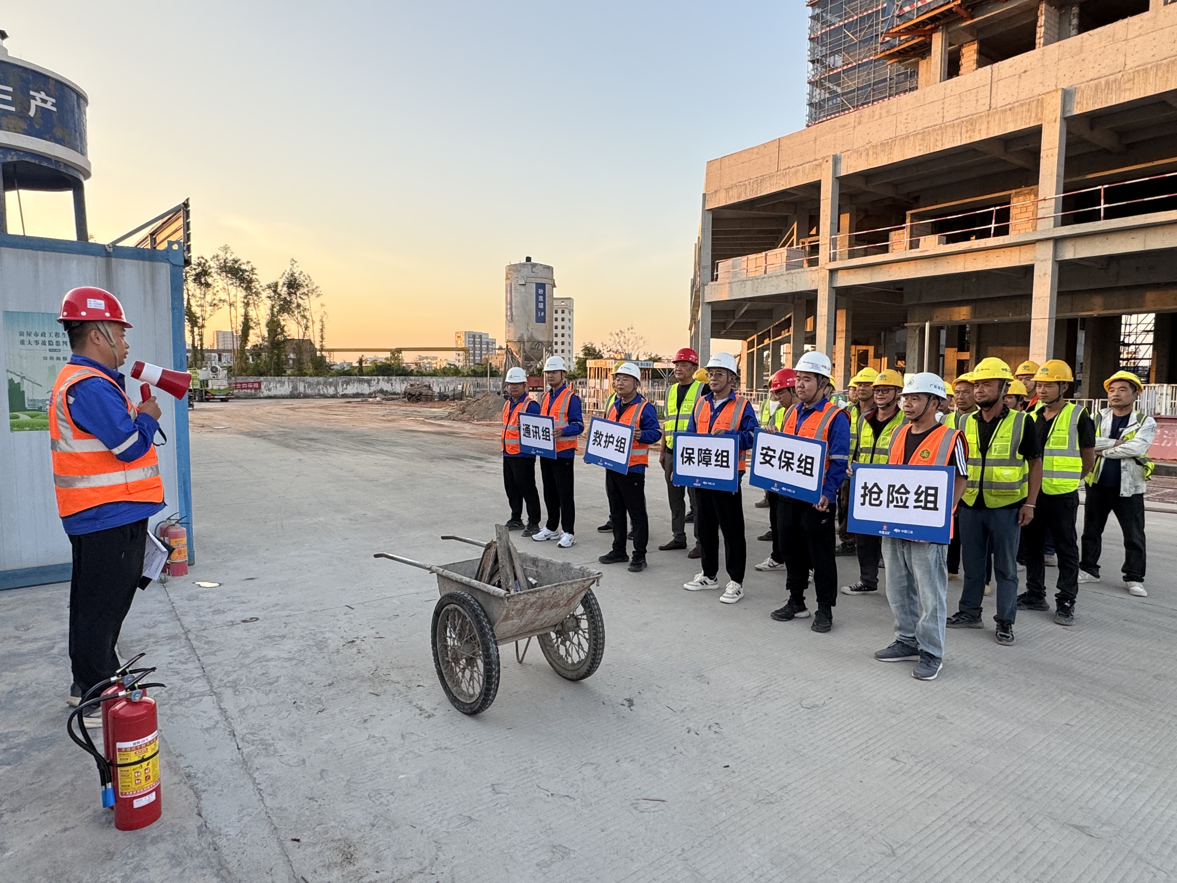 为进一步强化施工现场消防安全管理,提升全体人员的消防安全意识和应急处置能力,筑牢工地安全生产“防火墙”,11月26日,湛江东海岛安心家园一期项目部组织全体施工人员、管理人员开展了一场实战化消防演练活动。