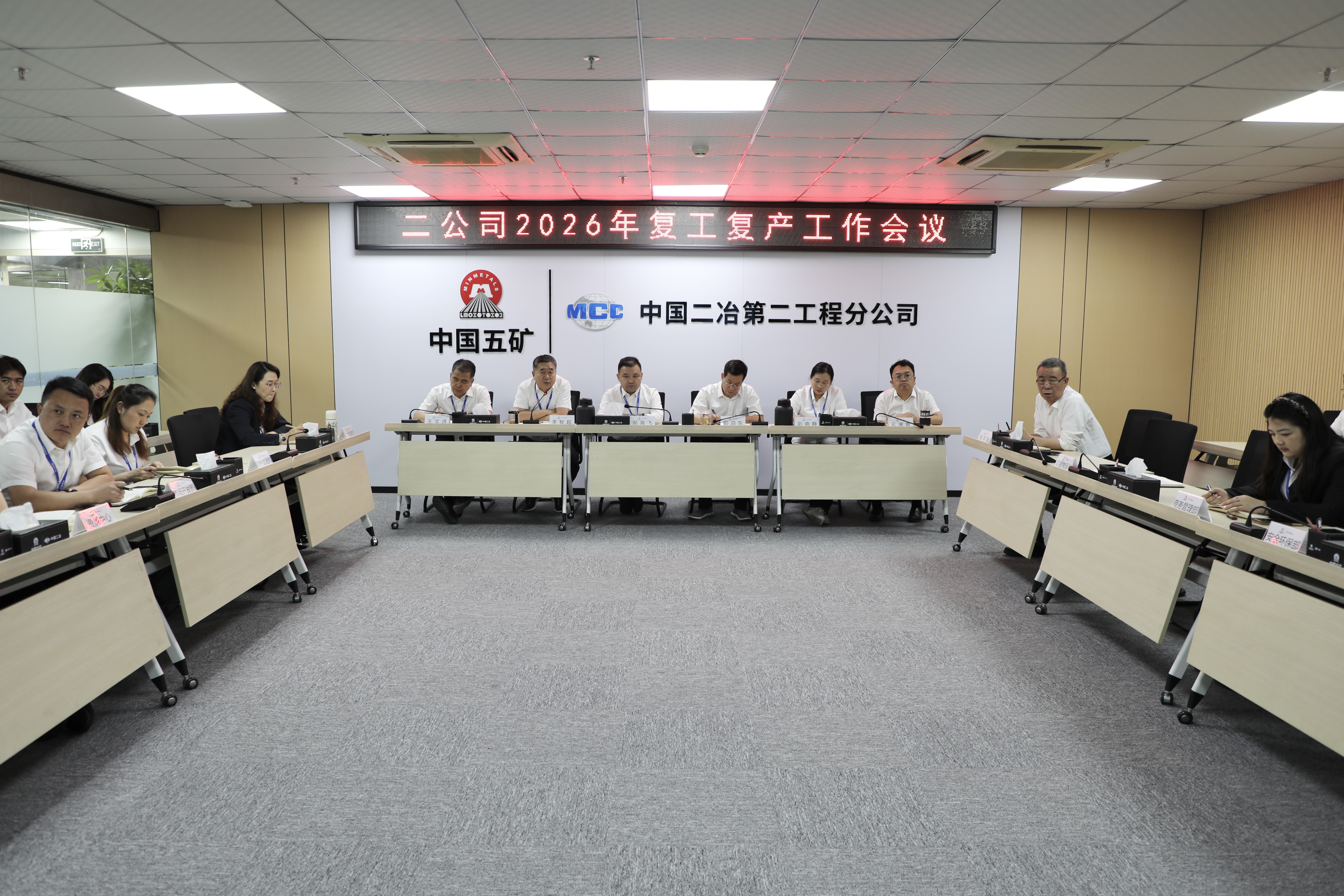 2月25日,二公司召开2026年复工复产工作会议。会议深入贯彻落实中国二冶工作部署,全面分析当前经营发展与项目履约形势,统筹安排复工复产、市场营销、清欠回款、作风建设等重点工作,动员全体干部职工收心归位、迅速行动,确保年度各项工作开好局、起好步。二公司总经理郝海飞总结节前工作并部署2026年重点工作,纪委书记李智超主持会议,项目履约管理部通报复工复产人员到岗情况。
