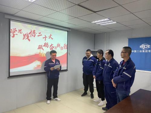 为深入学习宣传贯彻党的二十大精神,把一线人员思想统一到党的二十大精神上来,以昂扬的斗志推进项目建设,11月18日,管道分公司凯里市第一人民医院搬迁建设项目组织开展“共学二十大”主题活动。