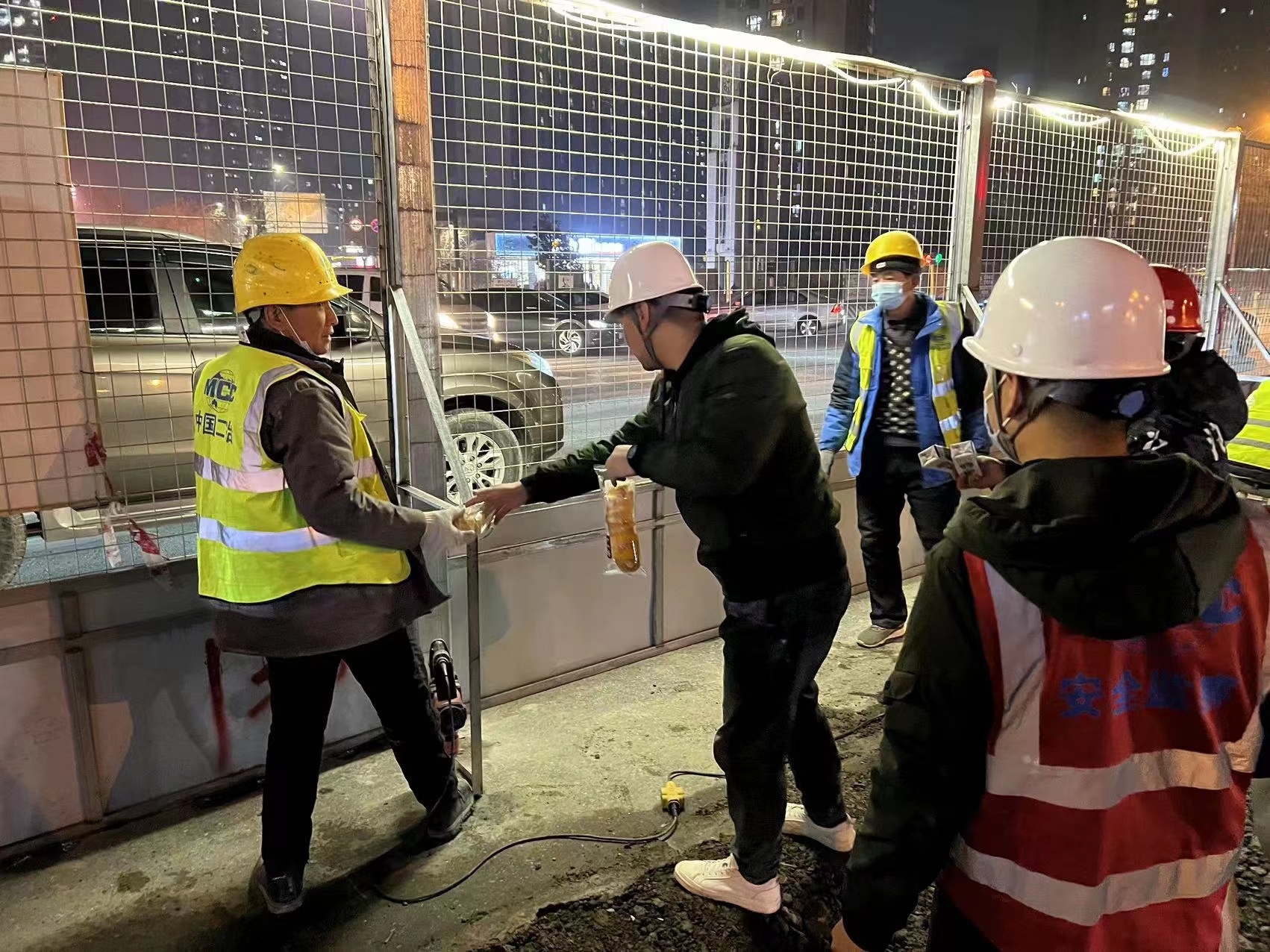 1月8日晚,在春节来临之际,中国二冶陕西分公司总经理李春杰、副经理李云鹏一行深入西咸新区世纪大道项目工地了解工程进展情况,向临近春节仍坚守在施工一线辛勤工作的工人送上了关怀和慰问。
