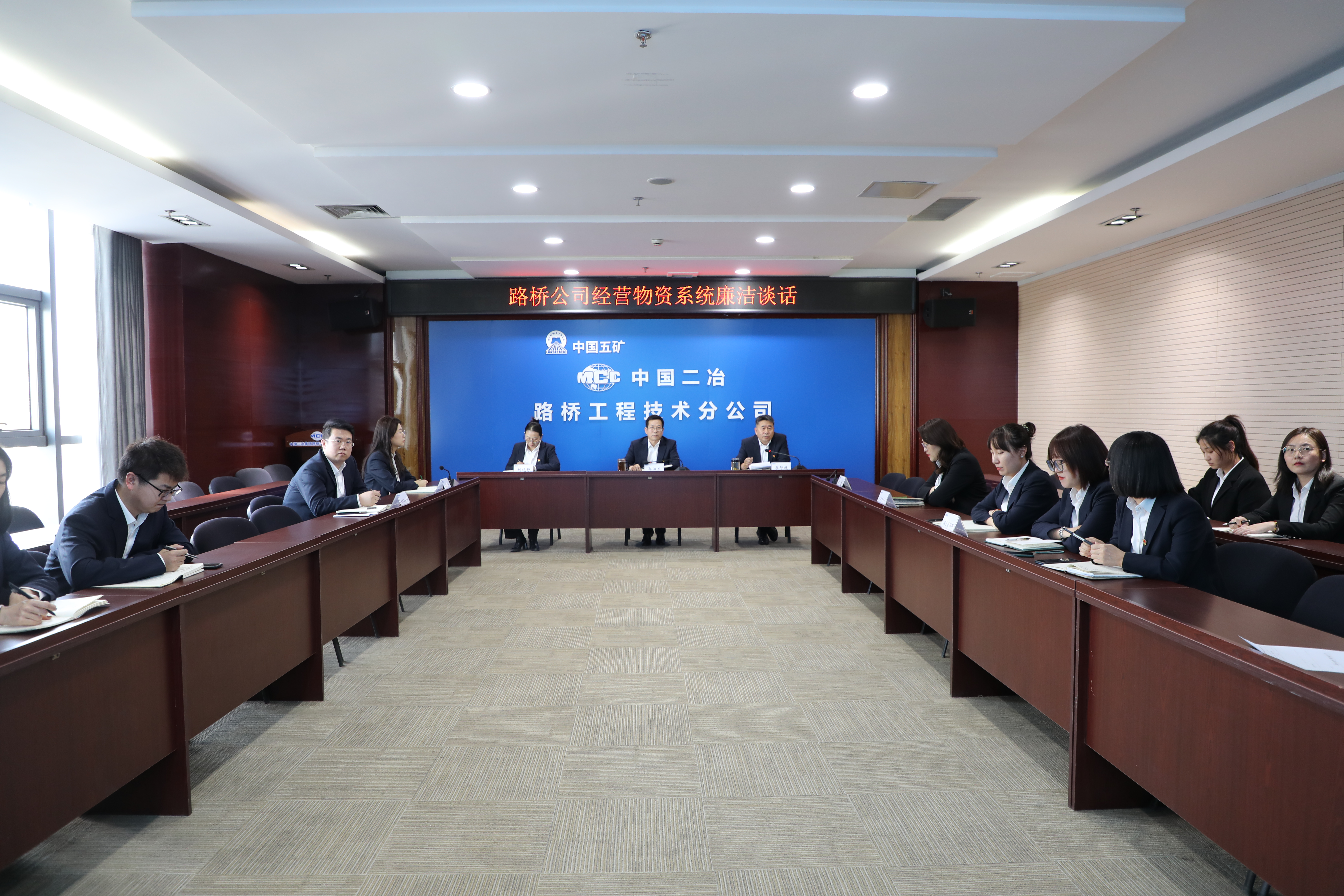 为全面贯彻落实党风廉政建设责任制,加强对干部职工的教育、监督和管理,扎紧廉洁风险“防控网”,2月8日,路桥分公司纪委组织对经营、物资系统开展廉洁谈话,分公司纪委书记李智超、党委书记郭泗东,分管经营副总经理刘晓静,综合办公室、人力资源部负责人,经营、物资部全体人员在主会场参会。