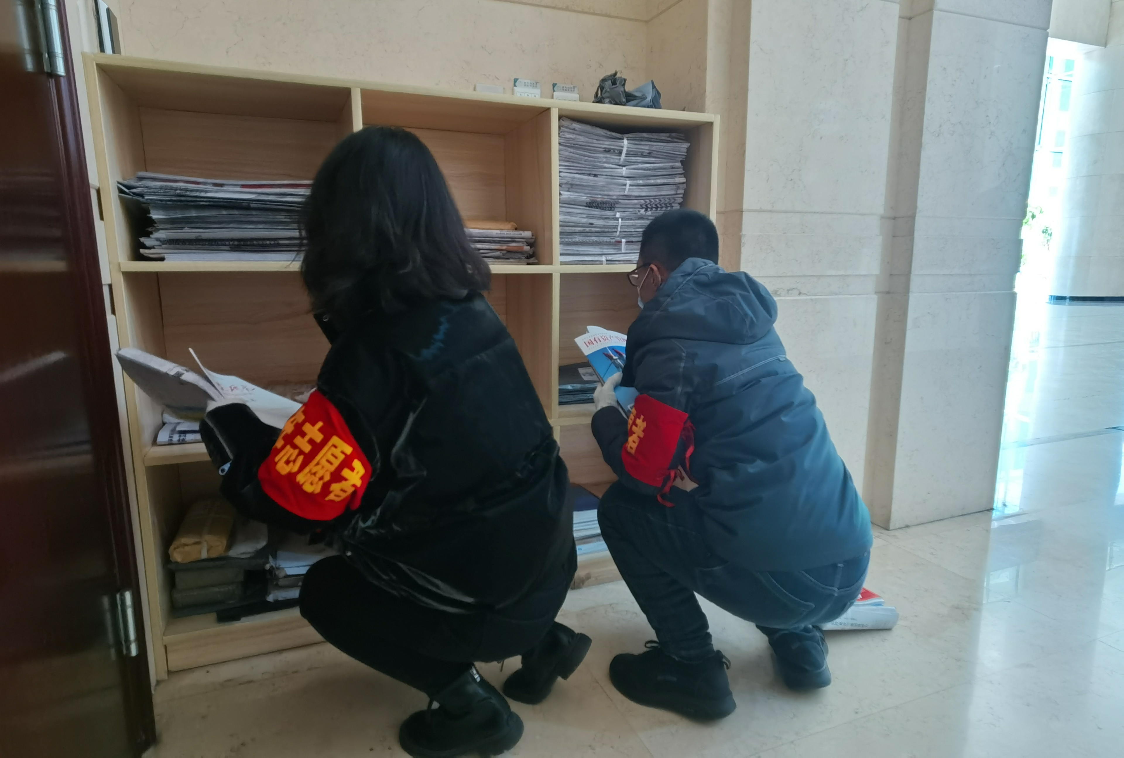 传承雷锋精神,汇聚青春力量。3月1日上午,冶金分公司团青志愿者来到一楼大厅整理报刊存放柜,并为柜子贴上了新标签,方便了邮递员准确投递,也方便了你我的领取,井然的架柜,展现着公司最澄明的风貌。随后,团员青年们接过雷锋精神的接力棒,对院内自行车摆放和整理,放归原位,还我们一片整齐明朗的天地;对丰巢快递柜进行消杀,将灰尘与垃圾带走,将干净与整洁带来,赋予公司崭新明丽的面貌。