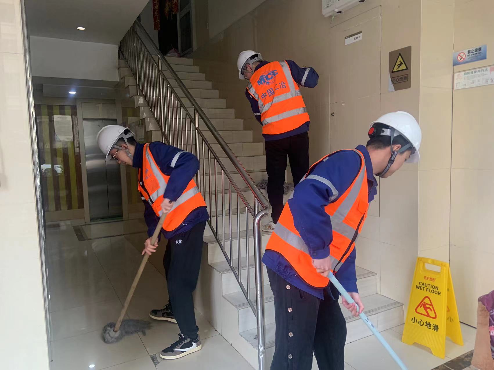 3月4日上午,中新天津生态城项目经理部10余名团青志愿者携带清洁工具,分成几个小分队分别对项目周边的停车站点、道路旁的宣传栏、站牌以及社区内各楼栋的入户大堂开展清洁行动。