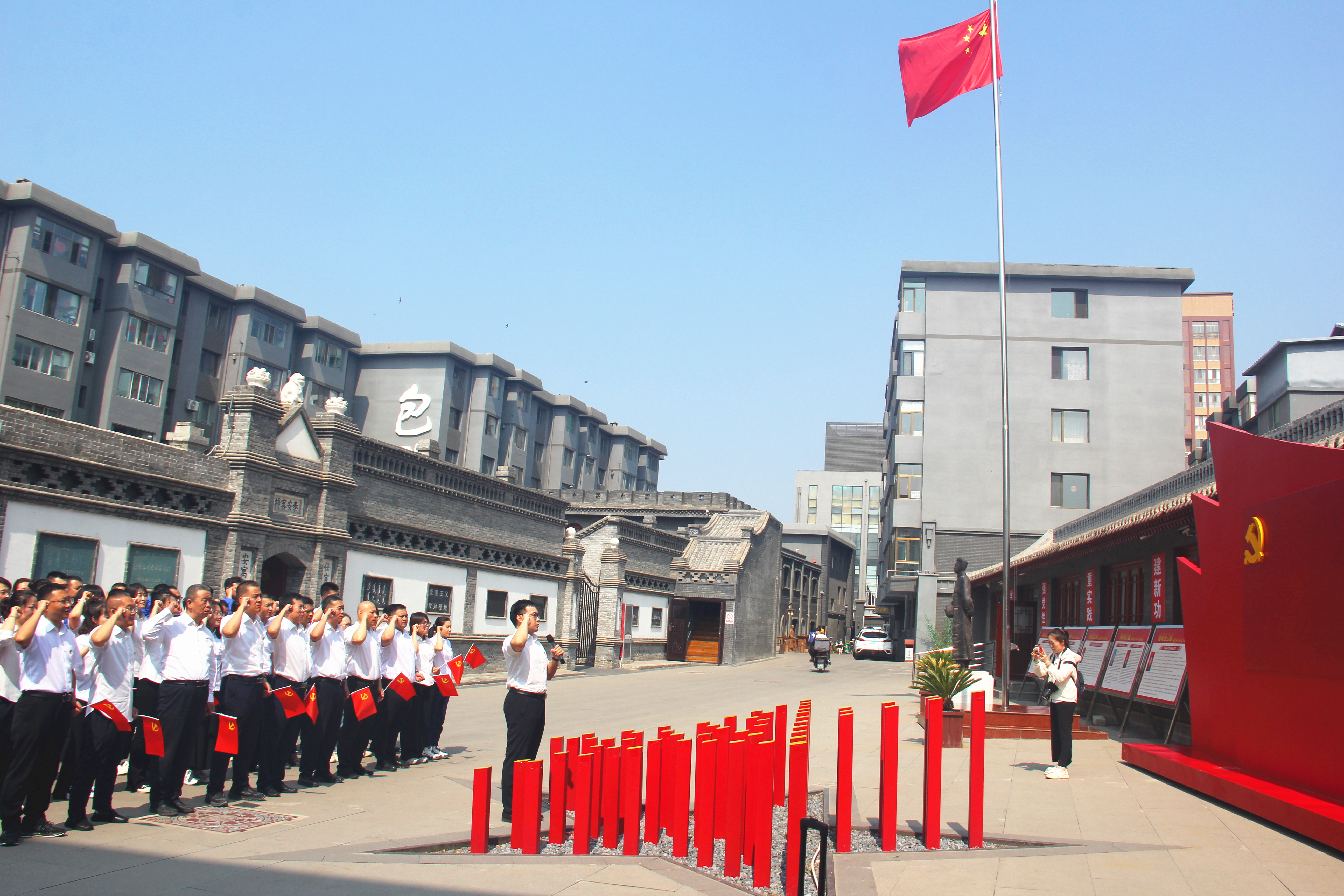 活动队伍随后抵达革命圣地——王若飞纪念馆。在庄严肃穆的纪念馆前,全体党员面对鲜红的党旗,高举右拳,重温入党誓词。铮铮誓言响彻云霄,字字千钧叩击心灵,回溯了入党时的初心,更加坚定了为共产主义事业奋斗终身的理想信念。步入展厅,党员们怀着崇敬的心情,通过珍贵的史料和文物,认真追寻王若飞同志的光辉足迹,深刻感悟老一辈无产阶级革命家坚定的理想信念、崇高的革命精神、无私的奉献情怀以及廉洁自律的高尚风范。观看红色影片《为正义辩护》片段,激励着大家从红色基因中汲取砥砺前行的不竭力量。