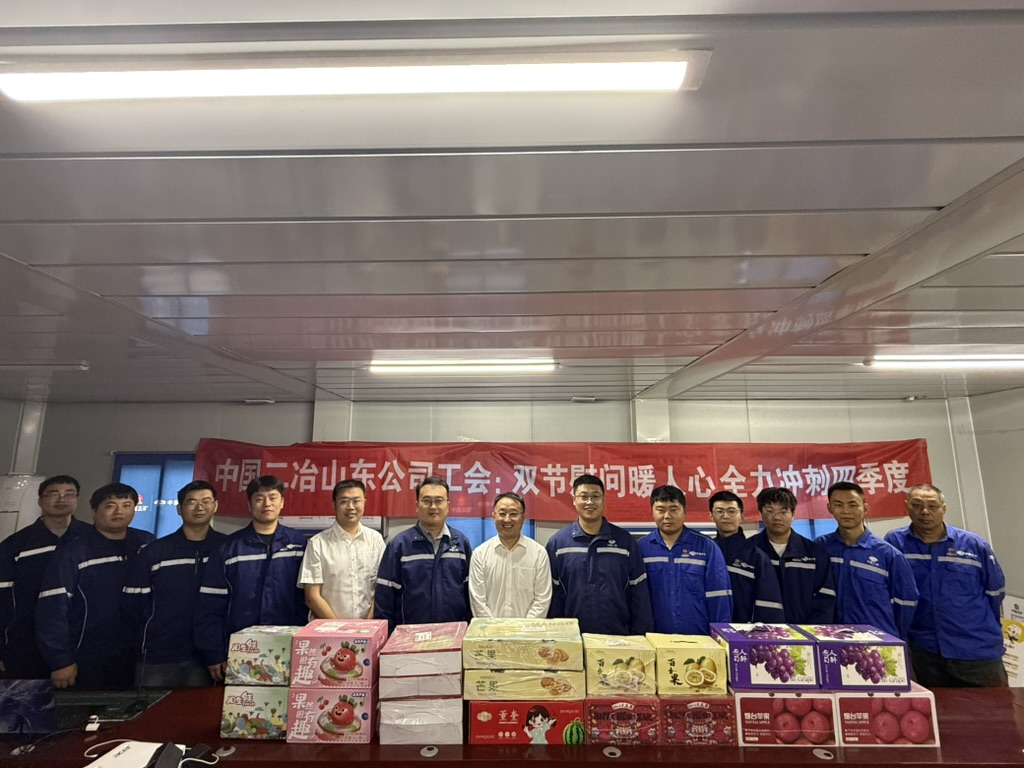 双节将至,为进一步鼓舞一线员工士气,全力确保年度目标任务完成,9月23日,山东公司党委副书记、纪委书记尹旭到二冶(山东)建工博兴桂语朝阳项目部开展“双节慰问暖人心 全力冲刺四季度”双节慰问活动,为一线员工送去暖心福利。