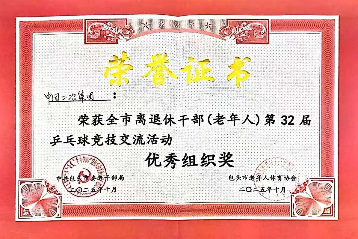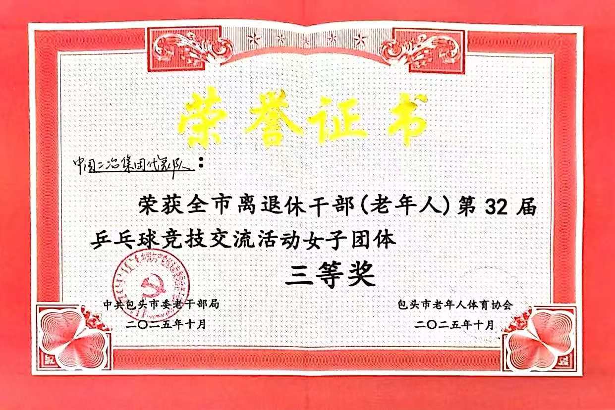 近日,由包头市委老干部局、市老年人体育协会主办,市老干部活动服务中心承办的全市离退休干部(老年人)第32届乒乓球竞技交流活动圆满结束,中国二冶在此次活动中成功斩获优秀组织奖与女子团体三等奖两项荣誉。