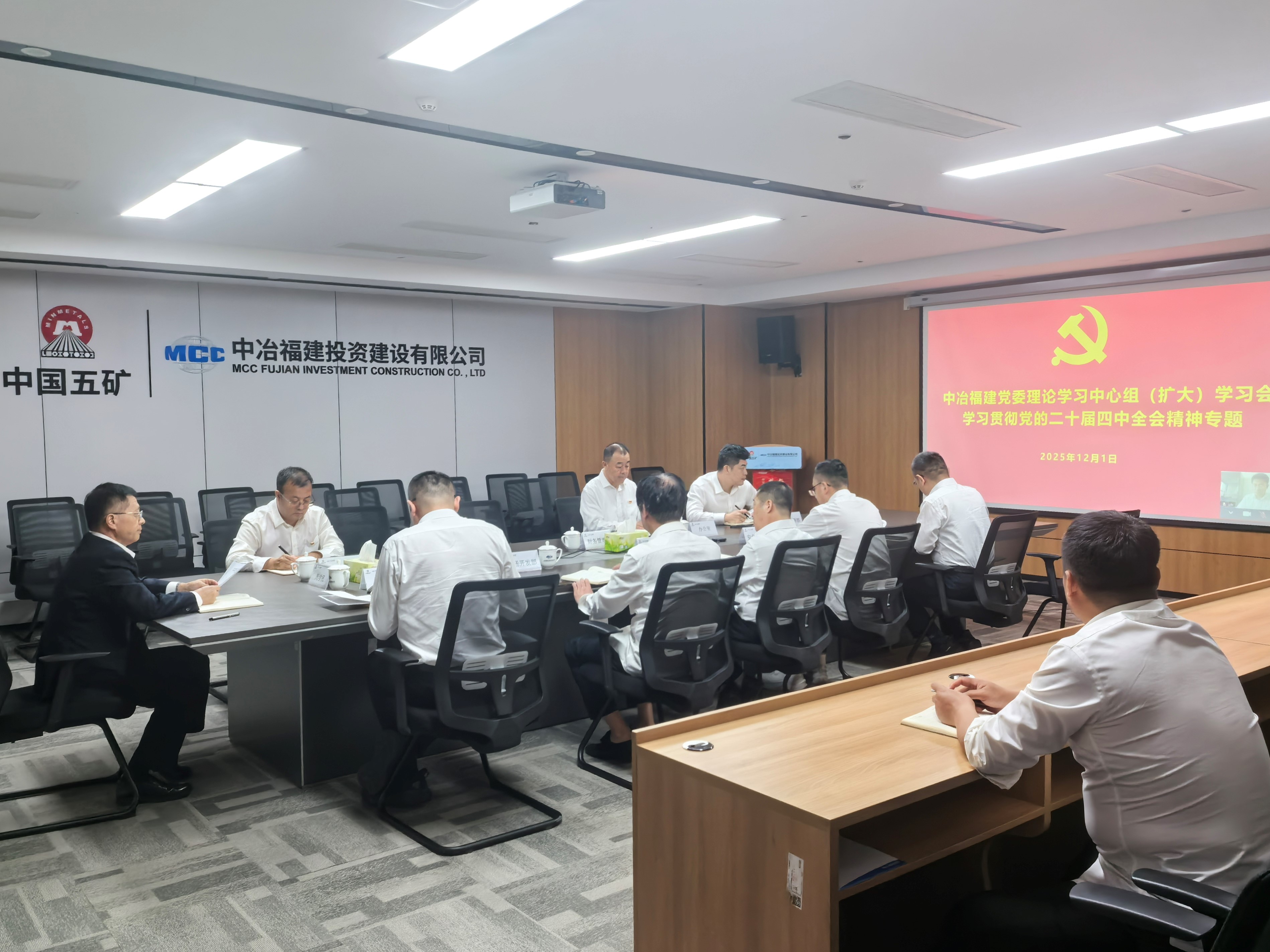 12月1日,中冶福建公司党委召开理论学习中心组(扩大)学习会,专题学习党的二十届四中全会精神,并研究部署贯彻落实相关工作。会议由公司副总经理,中冶福建公司党委书记、董事长、总经理周学民主持并讲话。