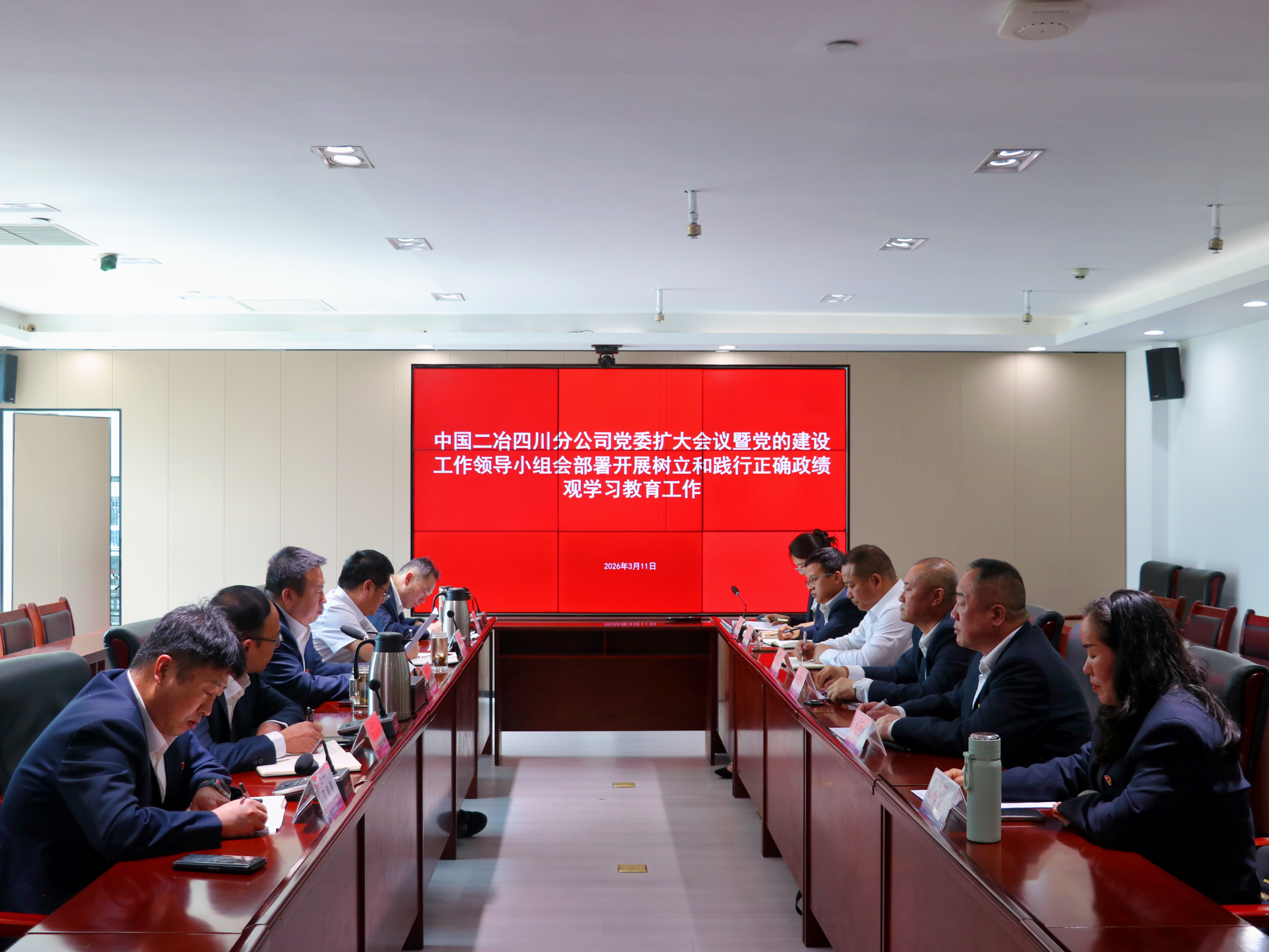 3月11日,中国二冶四川分公司党委召开扩大会议暨党建工作领导小组会,学习贯彻习近平总书记关于树立和践行正确政绩观的重要论述,传达学习中央党的建设工作领导小组会议部署、中央办公厅有关通知精神,以及国务院国资委党委扩大会议暨党的建设工作领导小组会议精神,部署启动分公司树立和践行正确政绩观学习教育。分公司党委书记、总经理,党建工作领导小组组长鲍文明主持会议并讲话。