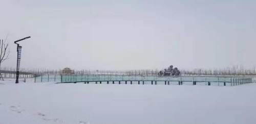 大美北疆中惟有准东的雪最让人轻灵。在这里,不全是北风卷地白草折;在这里,你可以聆听公园桥面落雪的声音,感受大漠戈壁难得的浩瀚宁静;在这里,同样有辛勤的人民来创造又一个奇迹。我明白,我们是无法挽留住任何季节的离去,但是你还会回来。正如来年开春这座曾种满鲜花绿树的公园也必定会忽如一夜春风来,千树万树梨花开。