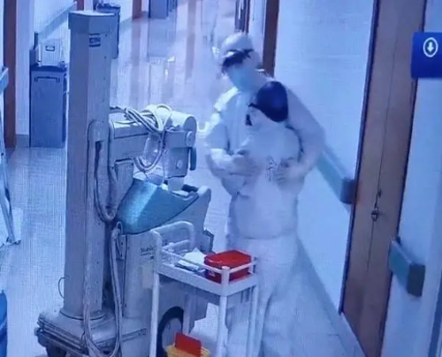 2月4日傍晚,绍兴市人民医院的隔离病房上演了感人一幕:一对全副武装的医护夫妻不期而遇,两人不约而同敞开双手,互相拥抱打气。这一幕刚好被监控记录下来。这对夫妻都是市人民医院的员工,丈夫叫陈炳,是放射科的医生,妻子叫徐小奇,是小儿内科副护士长。疫情发生后,两人主动请缨,要求到隔离病房工作。