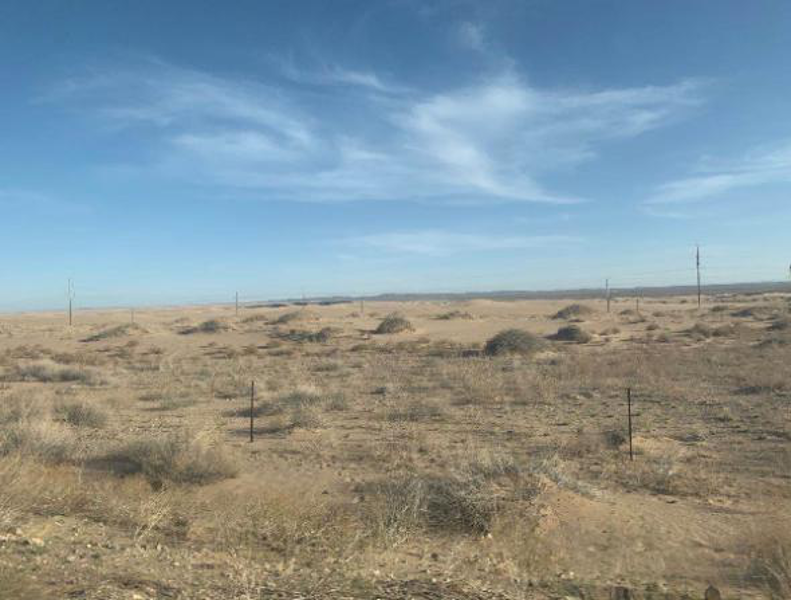 一路上,走过几百公里的河套平原,穿过肥沃农田演变成的漫漫的黄沙。在西下夕阳的照映下,像是大自然留给人们的宝藏,在傍晚里闪闪发亮。建设者们驶向远方的车辙印,仿佛是在这片黄土上画下的决心与热情。