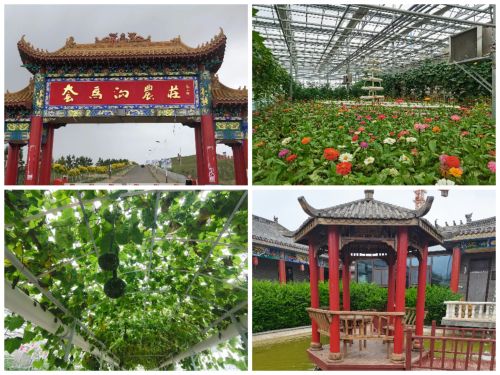 据介绍,套马沟景区融合养殖、种植、加工、观光旅游为一体,以农业、农村为载体,以生态为依托,以旅游为引擎,以文化为支撑,以富民为根本,是中国现代农业“嘉年华”的样板。庄内农耕文化村史馆、江南风情四合院、陕北窑洞、德诚塔、绿色九曲、欧式木屋、为民湖、网红桥、休闲垂钓鱼塘、梦幻风车隧道等,让游客尽享草原村落巨变后的风光。乘坐观光车,首先进入套马沟农耕文化研学基地,基地绿色无公害蔬菜瓜果,鲜花旖旎盛开,可以采摘,宛如世外桃源一般,让人流连于此眷恋不舍。随后,我们步入江南风情四合院,进门就是招财进宝的大肚弥勒佛坐像,大肚子滚圆凸出,十分醒目,被游人摸得光滑透亮。这里雕梁画柱,小桥流水,游人们在此纷纷拍照留念,体味草原江南之韵味。风过之处,湖水泛起阵阵涟漪,湖边的俄罗斯风情小木屋十分独特。在网红桥旁、风车隧道留影,感受时光穿越于青春岁月的美好。远处白墙灰瓦的江南建筑,在蓝天白云下,十分抢眼。据说,景区里晋陕风格的窑洞格外精致,有开放式厨房,带淋浴的卫生间,温馨浪漫,只是我们此次没有过去。