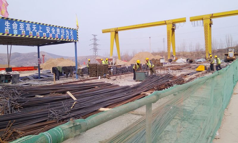 该工程基础施工节点于2018年11月17日拉开施工帷幕,负责此项施工任务的城建分公司太钢项目部针对磨磁厂房基础较多,基底标高种类多达18个,且自然地貌复杂,基础短柱较高等施工难点,迅速召开工程例会,组织技术人员开展技术攻关和合理化建议活动,主动加强与设计、监理方沟通力度,并借鉴以往土建工程先进经验,创新施工工艺,按照基础标高不一,分别制定施工方案,突破难关。施工过程中,为了确保基础关键节点优质快速完成,项目部经理亲自组织技术人员加班加点进行放线测量,找准中心线位置和基础标高,制定质量保证措施和赶工期措施,掀起“百日攻坚战”施工大干热潮,冬期不停步,加快施工进度。数久寒天,职工们虽头带棉质安全帽,但人人脸还是像红苹果一样;进入2019年3月份,北方地区春寒料峭,职工们依然斗志昂扬,投入施工大会战中,发扬“一天也不耽误,一天也不懈怠”的中冶精神,昼夜奋战,艰苦拼搏,4月9日,磨磁厂房最后一排基础钢筋绑扎、支模全面完成,4月13日,混凝土浇筑令下达,泵车来回穿梭于现场,一罐罐混凝土在职工们的精心振捣,摊铺、养护下,于4月14日下午顺利完成,共计浇筑混凝土3410立方米,钢筋绑扎225吨,磨磁厂房基础施工大节点就此宣告完美收官。