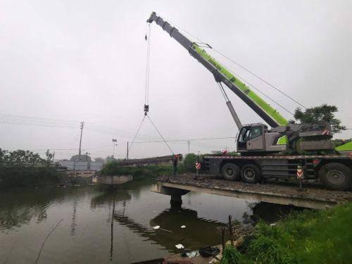 在拆除过程中,该项目部严格按照先拆除边跨护栏,凿除和破碎桥面铺装,然后凿除、切割桥面板铰缝,从中到边吊出梁板,最后修筑围堰切割凿除盖梁及墩柱既定的方案组织施工。安全、质量管理人员在做好安全教育和施工技术交底的同时,坚持跟班作业,跟踪检查,对现场施工过程实施全天候监控,该项目部班子成员轮班坚守在现场,加强现场的协调指挥,经过全体人员2天的艰苦鏖战,安全、圆满将南塘桥15片混凝土板梁拆除,并顺利吊移到指定破碎位置。