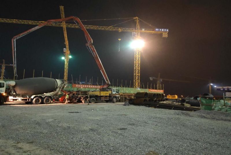 在该项目部全体管理人员努力下,于晚上20点开始浇筑,到5号11点全部浇筑完毕,浇筑混凝土共计1530立方米。在晚上浇筑过程中,技术员晚间加班,时刻查看浇筑进度和质量,检查混凝土塌落度及试块制作情况,随时为现场解决问题。
