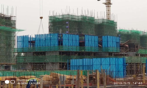 5月5日,华东分公司李乡一期(AB地块)建设项目9#楼开始附着式脚手架投入使用。