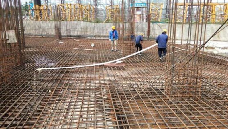 本次浇筑的范围是14#楼筏板基础,厚度大多为1.1m,还有小部分0.5m厚。整体大致呈现矩形,长43.9m,宽21.9m。为保证大体积混凝土的浇筑质量和一次性顺利完成,项目部精心策划并克服了施工场地狭小,工期紧、雨水重等各种困难,提前策划部署,从施工技术准备到质量控制、安全措施、劳动力组织等多个方面作了充分的准备:多次组织工程技术人员和现场施工人员召开专项方案会议,安排交底工作,详细讲解浇筑方案;安排布置施工组织计划、施工准备、主要施工方法及技术措施、混凝土的供应、浇筑顺序、养护等工作并进行分工分责到人。在浇筑过程中,使用混凝土罐车数台、天泵2台,安排技术员和施工员24小时旁站,做好外部协调和场地交通疏导工作,保证混凝土与钢筋坚实有力的结合,使上部结构安全可靠。