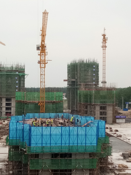 5月4日,华东分公司承建的李乡一期(AB)地块建设项目9#楼全钢型附着式升降脚手架第一节完成并投入使用。