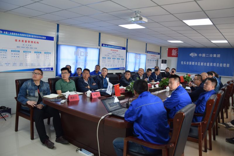 会上,新都市商务大厦项目部经理以PPT形式,全面系统汇报了项目概况、工程特点、项目管理团队 、创优目标、施工平面布置、办公区、施工区、智慧工地创建、绿色施工及环境保护等亮点以及急需建设单位解决的问题。新都市区管委会副主任王凤强代表监督管理小组作重要讲话。他向辛勤奋战一线,放弃节假日,日夜坚守工地,掀起施工大干热潮加快施工进度的中国二冶一线职工致以最诚挚问候的同时,王凤强指出,此次由新都市区管委会、建设投资运营管理有限公司、规划发展部、公共管理部等相关单位组成的建设单位工程监督管理小组对新都市区在建工程项目进行全方位检查指导,目的就是进一步贯彻落实包头市加强文明城市建设新要求,强化项目安全质量监管力度,提升全市环境治理水平而开展的一次大型活动。通过检查,中国二冶高标准、高质量、严要求推进新都市项目建设,率先推行智慧工地理念,为新都市区规范项目管理激发了新的内生动力,不愧为西北地区一流建设团队,今后要将此工地作为样板标杆,予以推广和学习。