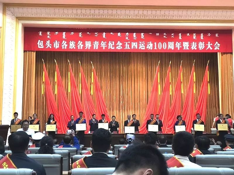 在包头市各族各界青年纪念五四运动100周年暨表彰大会上,中国二冶集团城建分公司团委荣获2018年度“全市五四红旗团委”;中国二冶集团郑州市管城区绿化提升项目EPC工程总承包项目部团支部、中国二冶集团房地产公司乌海青山公园南项目部团支部荣获2018年度“全市五四红旗团支部”;中国二冶集团建安分公司杜泽鹏、中国二冶集团城建分公司王峙杰荣获2018年度“全市优秀团干部”荣誉称号;中国二冶路桥分公司徐瑞彬荣获2018年度“全市青年志愿者”荣誉称号;在表彰会上,包头市政府主要领导亲切会见了获奖代表,并与大家合影留念。