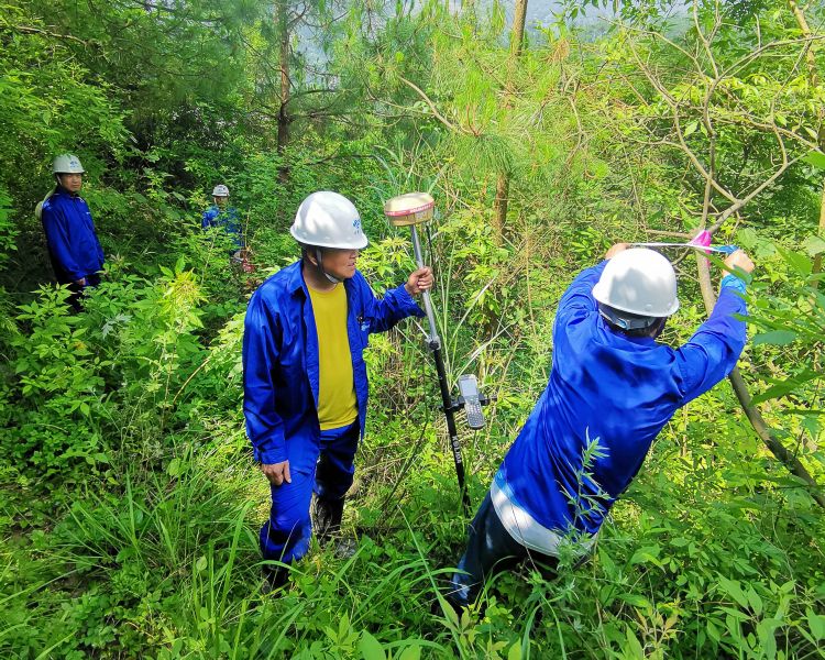 该项目途经贵州省多个县及古城,地势险峻,多为森林和陡坡,项目部人员需自己砍树开路进行测量放线,且当地天气多雾,导致测量仪器容易出现没有信号的情况,大大增加了前期测量工作的难度。