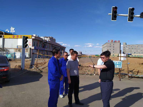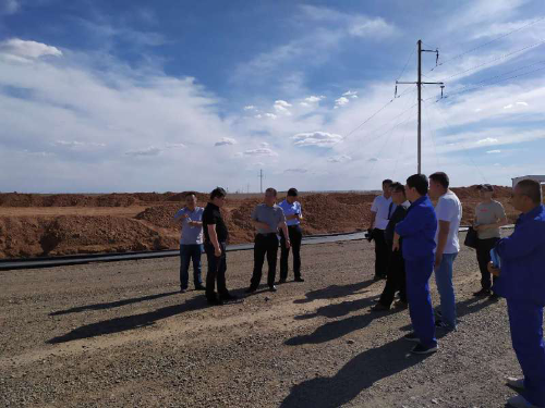 6月3日,新疆准东经济技术开发区党工委书记李绍海、规划建设局局长刘英明对新疆分公司准东项目部承建的鸣沙山街、求实北路等项目进行启动前的现场调研,准东项目部经理、技术质量部负责人陪同。