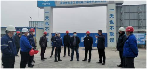 3月1日,安徽太和县副县长刘建领导一行莅临太和卫星城电子商业产业园项目调研指导疫情防控复工复产工作,工程建设管理中心苗局长陪同调研。