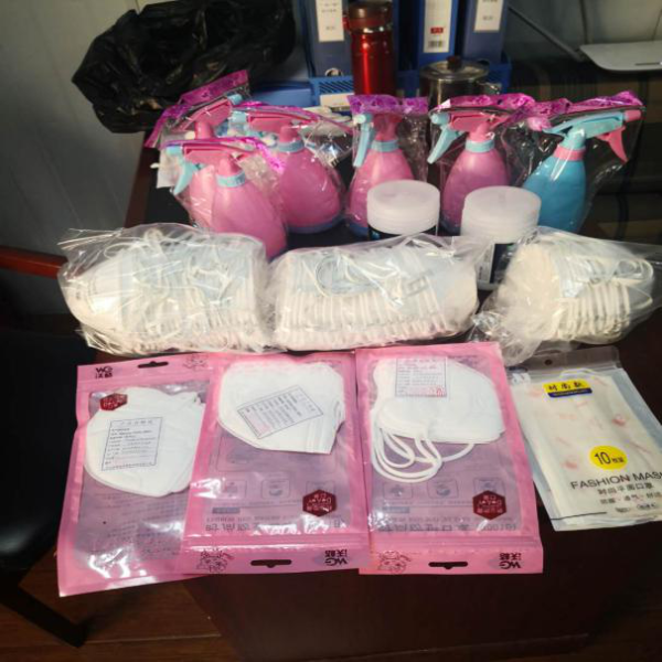 项目部购买的口罩、喷壶、消毒液等