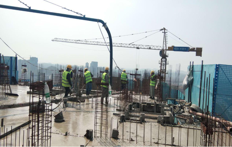 3月11日下午三点,由城建分公司承建的湖南株洲恒大誉景花园项目4#楼二十三层墙柱、二十四层梁板开始浇筑混凝土,浇筑方式为车载泵,浇筑顺序为先墙柱后梁、板、楼梯,共计浇筑混凝土172立方米,直至晚上九点多完成浇筑,共持续六个多小时。
