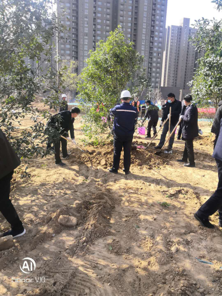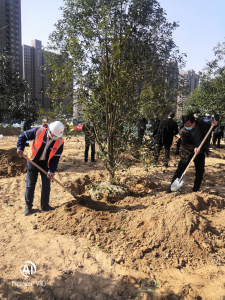在疫情防控期间,项目部精心组织,合理安排,在做好作业人员各项防控保障的同时加紧做好复工复产,得到业主、监理的一致好评。应张艳敏区长的邀请,项目经理温汉民同志与区领导合种下一棵桂花树苗,寓意加快施工进度、趁大好时节尽快完成绿化施工任务,项目经理带领项目部领导班子参加了义务植树活动。