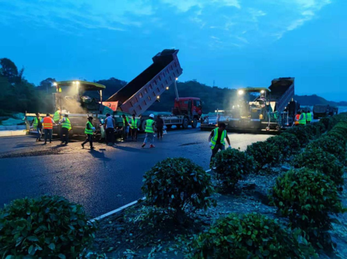 自开工以来,项目管理团队挑灯夜战、抢分夺秒,克服重重困难。项目合同工期2年,实际有效工期仅有15个月。为扭转局面,抢夺有效施工时间,全体参建人员自上而下的舍弃个人休息时间,舍小家为大家,日日夜夜与路为家,统筹安排,充分结合工程特点、地质环境等实际情况,制定项目管理目标,倒排进度计划,做到事前有计划,过程有跟踪,事后有总结,严格实行领导带班制,确定分工小组,排好值班表及联系方式,增加大型机械设备和劳动力,有效节约时间成本,实时现场监控。项目技术人员精密编制科学合理的施工方案,逐层分解施工任务,层层落实到各分包单位负责人,项目班子成员身先士卒,率先垂范,保证“白+黑”两班倒连续施工作业无隐患,全面开启施工“加速度”,在确保质量安全的前提下,抢抓进度,掀起大干狂潮,确保节点目标的顺利实现。