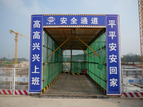 进场之初,安全文明标准化建设的集结号就已在隆隆的战鼓声中吹响。分公司高度重视安全文明标准化建设,项目部严抓安全文明施工教育,成立了以项目经理为第一责任人的安全文明施工管理小组,并组织日常检查、周总结和月末总结,明确责任、制定计划,狠抓细节。围挡之内,工地办公区、施工区布局有序,原料分区明确、堆放整齐,施工现场及时洒水、喷雾降尘,对裸露场地和土方进行覆盖或临时绿化,出入口的冲洗平台对运输车辆随时进行冲洗,建筑垃圾及余土定时密闭运输清理。同时,不断强化对施工人员的安全教育、技术交底,规范作业行为,施工人员佩戴安全帽,着反光背心,操作规范,井井有条的项目施工现场与二冶人斗志昂扬的精气神儿奏响了创优争先、优质履约的序曲。
