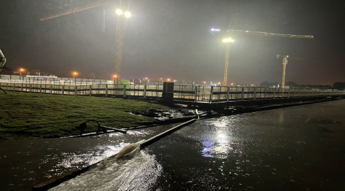 7月,一场台风“烟花”来势汹汹,从项目所在的鲁南地区登陆山东。抗台防汛,刻不容缓!项目部全体职工严阵以待、周密部署,临时组建防汛小组,启动应急预案,项目各工区迅速进入备战状态。28日晚间,狂风大作、大雨倾盆,基坑内的雨水以肉眼可见的速度上涨,项目经理带头顶风冒雨地指挥搬运沙袋,封堵基坑沿线倒灌处及沿河支流,架起水泵抽水、加固设备、检查用电、清淤排污、24小时值守······在暴风雨面前,项目部闻汛而动、逆风而行,在突发状况面前,以央企速度与力度筑起坚强防汛堡垒。台风过境后,项目部立即开展现场安全排查,积极组织复工复产,将台风对项目生产的影响降至最低。
