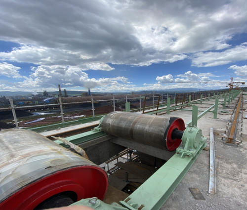 目前,C型矿石料场土建部分已经同钢结构、设备安装等专业进行了交接验收并作质量检查。钢结构专业主要负责30.5米平台的栏杆制作和焊接;设备安装专业负责轨道链接和胶带机的安装。此次进行的8、9、10段带式输送机的支腿焊接及检修跨的拉紧装置滚筒安装工作,是保证输送带具有一定拉紧力、不发生打滑现象和正常工作的重要前提,为下一步C型料场其他机械设备的安装打下坚实基础。