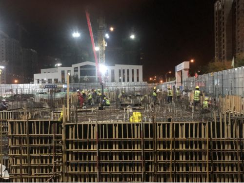 根据合同约定,为了配合销售,需要提前组织施工首开区的5栋楼盘。为此,振业项目部为保证工程进度计划顺利完成,施工前充分考虑诸多因素影响,加强管理积极组织分包单位紧密配合。8月26日晚,22号楼、23号楼地下结构已浇筑完成并施工至地面。