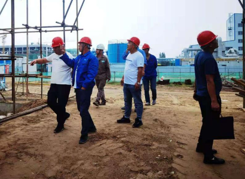 新威远药业有限公司工程部部长梁庆华、监理单位总监赵建强以及现场各施工队伍现场负责人陪同检查。