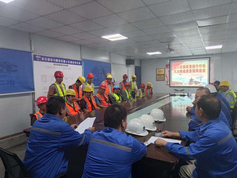 今年,质量月活动主题是“深入实施质量提升行动,大力推进质量强国建设”,湖南永州项目部提前制定质量月活动方案,成立质量月领导小组,确保活动有组织、有计划。在启动仪式上,项目部总工宣读了质量月活动方案,分阶段分步骤明确了质量月活动内容、职责范围。