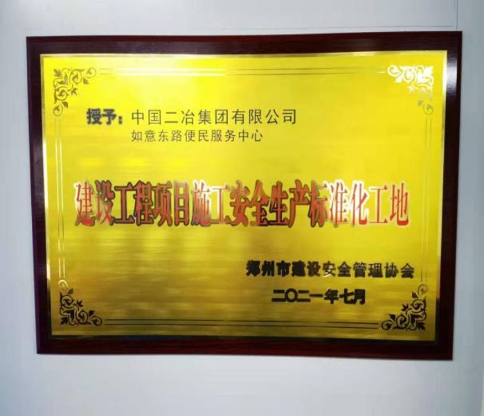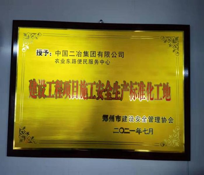 在2021年第二季度郑州市“安全生产标准化工地”评审中,中原分公司在建的农业东路、如意东路便民服务中心项目均荣获郑州市“安全生产标准化工地”称号,郑州市建筑安全协会评审小组经过内业资料验收和现场考评,对农业东路、如意东路便民服务中心的标化工地建设工作给予了高度评价和充分肯定,表示两个项目安全生产标准化工地各项建设内容符合郑州市标化工地标准,授予郑州市“安全生产标准化工地”称号。