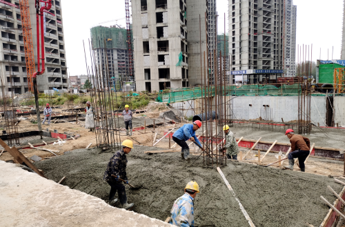 沈丘三里井棚改项目商业楼建筑面积11295平方米,建筑高度24米,4层钢筋混凝土框架结构,经过前期的精心准备,该商业楼独立基础已达到浇筑条件。该项目20#商业楼施工中面临着临街、临路、场地狭窄、人员密集等问题,国庆期间河南地区气温骤降,阴雨绵绵,给施工带来一定难度。项目部全体参战职工团结拼搏,迎难而上,技术人员全天紧盯施工现场,做好技术质量跟踪指导和服务监督,确保商业楼独立基础钢筋绑扎、模板支设、混凝土浇筑三大重点工序质量达优。10月6日,经过了长达10小时的连续作战,335立方的混凝土顺利浇筑完成,打了一场漂亮的攻坚战。