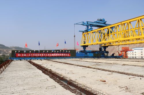 该项目为联络线标段的控制性工程,全线长1250米,在黄河南北两岸混凝土引桥25跨,匝道8跨,均为预应力混凝土箱梁,先简支后桥面连续,单根箱梁长度30米,共计201片。其中,南岸混凝土引桥和匝道有600米位于G109国道上,且邻近兰新铁路涉铁施工。为解决预制箱梁运输距离远、施工场地狭窄、G109国道上汽车流量大、邻近兰新铁路涉铁施工安全风险系数高等难题,该项目部主动作为,科学组织,统筹资源,坚持高标准、严要求组织实现预制箱梁生产、倒运和吊装各项施工工序衔接,施工中完善领导带班、现场值班巡查、施工动态管控机制,落实安全环保、技术质量措施到位,坚持24小时昼夜施工,倒班作业,不断掀起工程大干高潮,加快推进施工进程,优质高效完成了201片混凝土箱梁的全部架设任务,使大桥南岸与相邻标段高架桥顺利衔接,北岸与相邻标段地面道路连接,圆满完成超千米跨越黄河大桥的全桥贯通,串联成为一体,受到了业主方兰州市建设投资集团的好评。