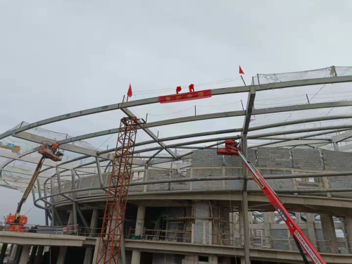 向“履约”冲刺。泰山文旅项目全民健身馆钢结构于10月19日喜封金顶,最后一根钢梁的安装完成,宣告着泰山文旅项目全民健身馆钢结构喜封金顶,标志着泰山文旅项目工程取得了阶段性成果。项目自2020年5月至今,项目部在公司领导下经过项目部全体管理人员及现场作业人员的共同努力,克服重重困难,在保障安全、提高质量的同时,倒排工期,优化方案,增调设备,紧密组织,科学安排,日夜赶工,在使用钢材3000余吨后终于迎来了封顶;