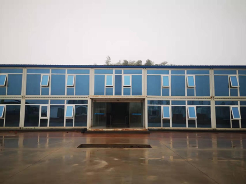 该项目位于园区东南角新品试制车间及南侧停车区。项目部办公区包括一栋两层办公楼,一栋宿舍,两拣功能性用房,晾衣棚等,建筑面积约1435平方米,绿化面积约平方米,工人生活区包括六栋两层工人宿舍,附属设施有工人食堂,盥洗区,晾衣棚等,工人宿舍共96间,可容纳600工人住宿,总建筑面积2262.24平方米,项目部办公及生活区内构筑物采用集装箱式板房搭建。项目部三面为彩板围墙,正面为铁艺栅栏,围挡,围墙长164米,高1.8米,主楼长52.8米,宽7.8米两层集装箱式扳房,为了节约成本,该项目部调用了该公司已完项目的共44间集装箱,另购35间二手集装箱板房,实现集中办公,住宿统一管理。