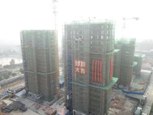 工期就是命令,履约就是责任。为加快工期进度,项目部采取对主体结构,二次结构交叉作业,同步进行方式,始终保持项目的高速运转。从地面清表、大临建设、挖土、基础施工,地库施工、主体结构推进,首栋楼封顶,主楼全部封顶,按照节点目标,实现安全、质量、进度齐头并进。在该工程建设施工最为繁忙之时,正值当地历年来的最强降雨季,项目部第一时间调整网络计划,优化施工组织方案,保证工程的安全有序推进。2020年11月2日,礼炮阵阵,彩旗飘扬,西城人家A区、B区工程首栋楼——A7#楼顺利封顶。今年以来,项目部又全面掀起“党旗飘扬、党徽闪光”行动暨“奋战 120 天,献礼建党百年华诞”劳动竞赛,做到季度有目标、月度有计划,每周有安排,每日有进展。5月10日,该工程18栋主楼实现封顶。