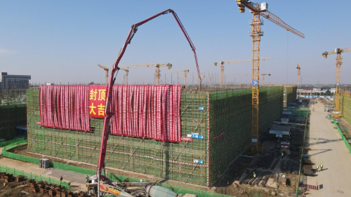 11月12日,在项目部全体人员的不懈努力下,华东分公司马鞍山综保区半导体保税研发制造基地建设工程EPC总承包项目西部园区7#厂房主体结构顺利封顶。