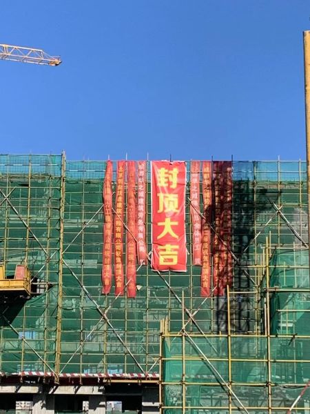 11月25日,坐落于具有浓郁历史文化的名城廊坊霸州市,城建分公司建设道国蕴城项目举行隆重的封顶仪式,共同见证17#住宅楼荣耀封顶,施工现场一条条红色标语、一个个彩旗迎风飘扬,将现场装点得格外喜庆。