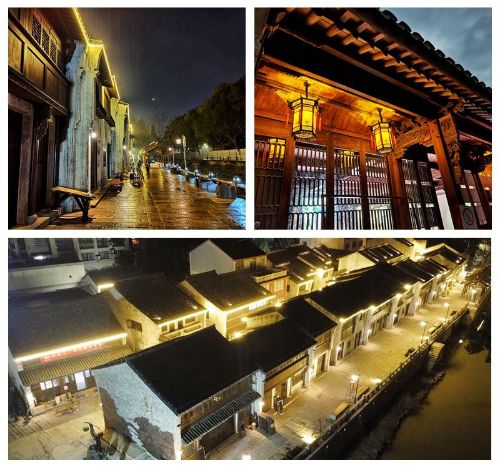 灯光工程安装完毕后,项目技术人员立即对其进行调试。在景观灯带全部点亮时,夜晚的大运河历史文化老街景色秀丽。街道驳岸上都散发出耀眼光芒,为这个“小镇舞台”披上了一层金色的衣裳。房屋门口的虹灯、房檐下的灯带,灯火辉煌,犹如一条长龙横卧在大运河上。