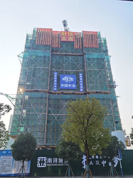 本次封顶的住宅楼主体共18层,自地下一层至主体封顶历时128天,从一纸蓝图到拔地而起,在面临工期紧、难度大、任务重、施工环境复杂的情况下,项目建设团队始终以坐不住的紧迫感、慢不得的危机感、等不起的责任感深耕细作,打跑了一只只制约工期的“拦路虎”,处理掉一道道施工技术上的“卡脖子”难题,通过科学施策解决了9#楼地基土暗河泉涌问题;精心组织防台防洪人员转移安置工作;统筹协调解决南方地区限电限产带来的材料供应不足问题;通过品茗软件精准验算型钢悬挑式外脚手架整体稳定性课题。项目团队通过进行现场分析制定科学合理的施工流水作业,保证现场作业面不闲置,各工序、各专业独立交叉施工互不干扰,以全方位立体施工达到高效建造以缩短工期,最终顺利完成9#楼主体结构封顶。